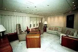 Wystrój wnętrza samolotu jest całkowicie zmieniony i przystosowany do spełniania potrzeb prezydenta. Są w nim luksusowe sypialnie, gabinety, dwie kuchnie, ale także sala operacyjna i dobrze wyposażona apteka[1]. Każda z maszyn jest naszpikowana sprzętem komunikacyjnym, mają własne centrale telefoniczne, mogą także spełniać rolę latającego centrum dowodzenia na wypadek zmasowanego ataku atomowego[1]. Jest także miejsce dla prezydenckiej rodziny, części personelu Białego Domu i dla przedstawicieli mediów[1]. Ze szczegółów militarnych wiadomo, że Air Force One jest chroniony przed atakiem rakietami ziemia-powietrze lub powietrze-powietrze i może być tankowany w powietrzu[1].