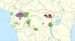 - ↑ Barry Hewlett: Cultural diversity among African Pygmies. W: Susan Kent (red.): Cultural Diversity Among Twentieth-Century Foragers: An African Perspective. Cambridge University Press, 2006, s. 240. ISBN 978-0-521-02600-0. [dostęp 2015-08-23].