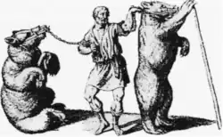 W obszernej izbie [...] podłoga jest urządzona w ten sposób, że można ją rozgrzać. Wtedy wprowadzają tam młodego niedźwiedzia w drewnianych sandałach na tylnych łapach i naturalnie rozpalona podłoga parzy mu podeszwy u przednich łap. Niedźwiedź wtedy się podnosi w górę i usiłuje oprzeć o ścianę przednimi łapami, ale odpędzają go biciem. I robią to dopóty, aż biedne zwierzę nauczy się stać prosto na dwóch łapach, chodzić i wykonywać inne sztuki na rozkaz [...] Jak tylko niedźwiedź nauczy się stać i chodzić, przeciągają mu kółko przez nozdrza jako przygotowanie do kursu wyższego, to jest do nauki tańca przy odgłosie bębna i piszczałki, a po skończonej edukacji zwierzę wyrusza w podróż po Europie w towarzystwie jednego z nauczycieli.