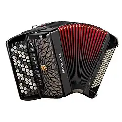 Akordeon (fr. accordéon) – instrument muzyczny zaliczany do grupy aerofonów[1][2] bądź idiofonów dętych (patrz niżej). Jest rodzajem harmonii, opartym na stroikach przelotowych. Prąd powietrza wytworzony przez ręcznie poruszany miech, wprawiając w drganie stroik wywołuje dźwięk. Początkowo działał przy użyciu miechów nożnych, które z czasem zostały zastąpione przez miech ręczny. Instrument ten z prawej strony ma klawiaturę klawiszową (lub guziki w przypadku akordeonu guzikowego), a z lewej guziki (dźwięki basowe, akordy) oraz – choć nie zawsze – manuał melodyczny zwany barytonem.