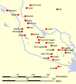 Lokalizacja tego miasta nie jest znana, choć niektórzy badacze wskazują na stanowisko Tell Sinker położone nad starożytnym korytem Tygrysu, na północny zachód od Bagdadu.