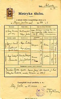 - ↑ Art. 88 ust. 1 ustawy z dnia 28 listopada 2014 r. Prawo o aktach stanu cywilnego (Dz.U. z 2025 r. poz. 594).