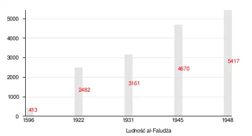 W 1596 Al-Faludża była średniej wielkości wsią, której mieszkańcy utrzymywali się z upraw pszenicy, jęczmienia, sezamu, owoców, winnic, miodu, oraz hodowli kóz i bawołów wodnych[3].