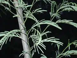 - Podwójnie pierzaste, 20–45 cm długości i 12–25 cm szerokości, podzielone na 6–12 par odnóg, każda z nich ma 20–30 par małych listków, są one podłużne, 1–1,5 cm długości i 2–4 mm szerokości.