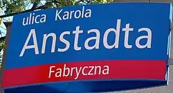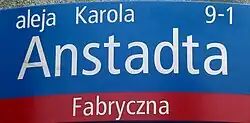 - ↑ Podczas wdrażania w mieście Systemu Informacji Miejskiej początkowo przy alei pojawiły się tablice z błędnym napisem „ulica Karola Anstadta”.