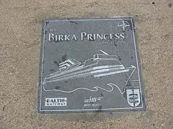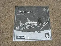 | Tablicę odsłonięto 8 czerwca 2002. Statek został zezłomowany w 2004 roku jako „SS Genoa”. |