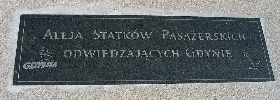 - ↑ Nowa gwiazda w gdyńskiej "Alei Statków Pasażerskich". Urząd Miasta w Gdyni, 12 sierpnia 2011. [dostęp 2011-09-02].