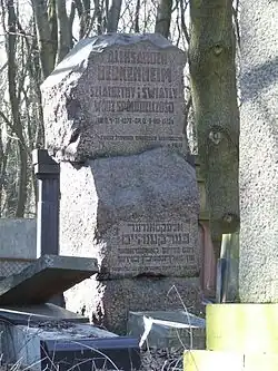 - ↑ Cmentarze m. st. Warszawy. Cmentarze żydowskie. Warszawa: Rokart, 2003. ISBN 83-916419-3-7.