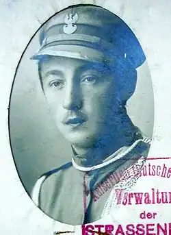 Uczył się w szkole handlowej we Włocławku, w 1917 ukończył szkołę średnią (Polską Centralną Szkołę Komitetu Obywatelskiego)[1] w Mohylewie, od tegoż roku służył w armii rosyjskiej, a od schyłku 1917 w I Korpusie Polskim. Jako żołnierz Wojska Polskiego brał udział w wojnie polsko-ukraińskiej w walkach o Lwów, a następnie w wojnie polsko-bolszewickiej.