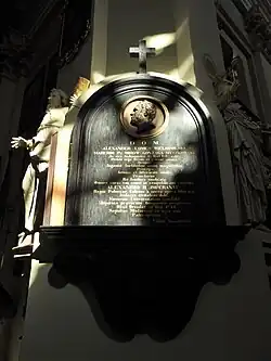 Zmarł po ciężkiej chorobie. Jego ciało zostało sprowadzone do kraju i spoczęło w podziemiach kościoła pw. św. Ducha i Matki Boskiej Bolesnej w Młodzawach Małych – nekropolii ordynatów pińczowskich; jego marmurowy nagrobek usytuowany jest w kościele pomiędzy prezbiterium a północnym ramieniem transeptu[15].