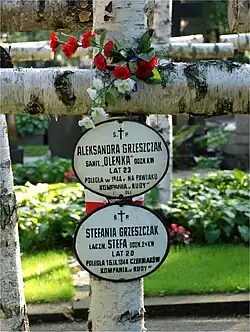 Aleksandra Grzeszczak została aresztowana przez Gestapo w styczniu 1944 r., podczas przenoszenia materiałów wybuchowych. Bestialsko torturowana w siedzibie Gestapo na al. Szucha, nie wydała nikogo. Została rozstrzelana w styczniu 1944 r. w ruinach getta. Jej symboliczna mogiła znajduje się na Powązkach Wojskowych, w grobie siostry Stefy.