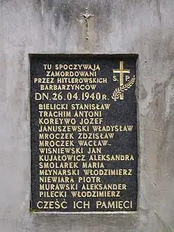- ↑ Mogiła zbiorowa Grupy Konspiracyjnej kpt. Bielickiego zamordowanych w dn. 26.04.1940 r.. [w:] Ogólnopolska Komputerowa Baza Cmentarzy Wojennych [on-line]. Rada Ochrony Pamięci Walk i Męczeństwa. [dostęp 2015-09-12].