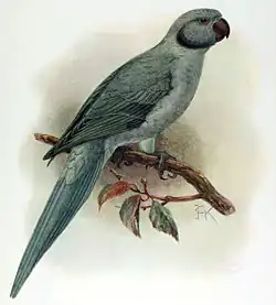 - ↑ A. Newton. Note on Palaeornis exsul. „Ibis”. 17 (3), s. 342–343, 1875. DOI: 10.1111/j.1474-919X.1875.tb05978.x.