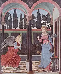 Inny fresk, z kościoła San Miniato al Monte we Florencji, ukazuje scenę Zwiastowania. Maryja i archanioła znajdują się w znacznej odległości od siebie, dodatkowo przedzieleni płaskorzeźbionym wazonem. Ponownie Zwiastowanie malarz przedstawił na obrazie sztalugowym, obecnie znajdującym się w Uffizi[1]. Tu główni bohaterowie usytuowani są w sklepionym pomieszczeniu z arkadami i roślinnością w tle. Maryja i Gabriel mają wysmukłe proporcje, a ich gesty są wyrafinowane. Baldovinetti namalował również scenę adoracji Dzieciątka przez Maryję na tle toskańskiego krajobrazu. Obraz ten Madonna adorująca dzieciątko jest przechowywany w Luwrze[2].