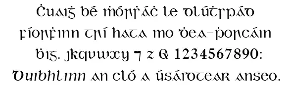 System Unikod dla alfabetu irlandzkiego przewiduje następujące znaki: