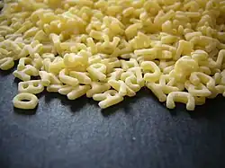 Alfabeto – rodzaj włoskiego makaronu, popularnego zwłaszcza w daniach przyrządzanych dla dzieci.