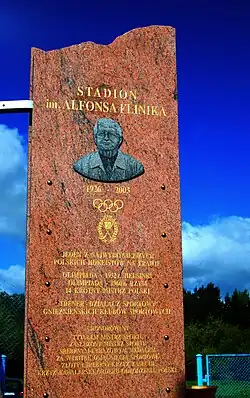 - ↑ UCHWAŁA w sprawie. Nadania stadionowi hokeja na trawie przy ul.Paczkowskiego w Gnieźnie imienia Alfonsa Flinika. Urząd Miasta Gniezno. [dostęp 2015-03-04].