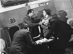 Do reżyserii autorskiego Sabotażu (1942) przymierzał się już w trakcie zdjęć do Podejrzenia. Nad scenariuszem pracował wspólnie z Harrison oraz Reville[193]. Jednym z głównych impulsów do realizacji było zbombardowanie przez Japończyków Pearl Harbor[194]. Selznick odsprzedał projekt Universal Pictures, przez co Hitchcock miał mniejszy budżet przeznaczony na nagrywanie. Na planie wykorzystano atrapy i modele, a fabrykę samolotów imitował magazyn[195]. Z uwagi na szybkie tempo pracy, krytycy przyjęli film z mieszanymi odczuciami[196], jednak komercyjny sukces Sabotażu sprawił, że producent podwyższył wszystkim pracownikom studia pensje[197].