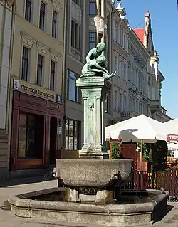 W 1908, z okazji jubileuszu stulecia apteki prowadzonej przez rodzinę Kupffenderów, ufundował rzeźbioną fontannę na Starym Rynku w Bydgoszczy. Jej odsłonięcie miało miejsce 4 października 1909 roku. Monument był wykonany z wapienia z grupą rzeźbiarską na szczycie (chłopiec, dziewczynka i gęś) wykonany przez artystę rzeźbiarza Karola Kowalczewskiego. Fontannę uruchamiano codziennie (oprócz zimy) od godziny 9 do zmroku.