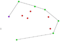 - Jeśli punkt B leży wewnątrz trójkąta AOC, to znaczy, że nie należy do otoczki. Usuń punkt B z listy i cofnij się o jedną pozycję (o ile bieżąca pozycja jest różna od początkowej).