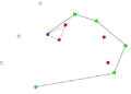 - Jeśli punkt B leży na zewnątrz trójkąta AOC, to może należeć do otoczki wypukłej. Przejdź do następnego punktu na liście.