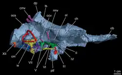 - ↑ Gabe S. Bever, Stephen L. Brusatte, Amy M. Balanoff, Mark A. Norell. Variation, variability, and the origin of the avian endocranium: insights from the anatomy of Alioramus altai (Theropoda: Tyrannosauroidea). „PLoS ONE”. 6 (8): e23393. DOI: 10.1371/journal.pone.0023393. (ang.).
