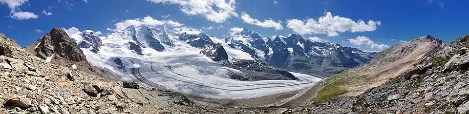 | Berninagruppe[1], Massiccio del Bernina[5] (AVE 66a) | z najwyższym szczytem Piz Bernina; |