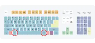 Klawiatura komputerowa zgodna z PC (Windows, układ QWERTY) | ||||||||||||||||||||||||