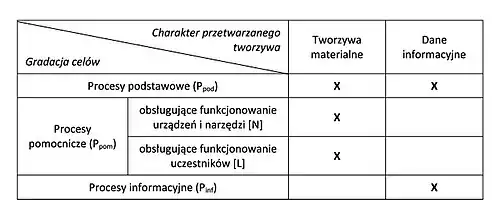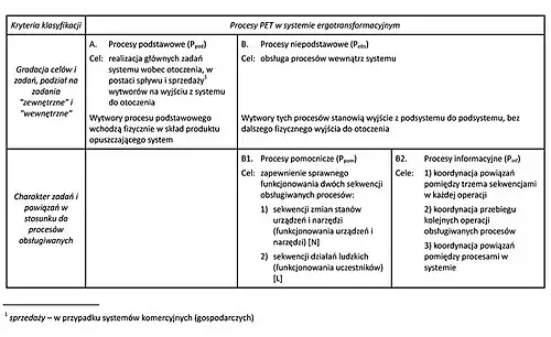 W każdym dowolnym systemie ergotransformacyjnym nieunikniony jest zestaw procesów podstawowych Ppod, pomocniczych Ppom i informacyjnych Pinf, a także w zależności od charakteru przetwarzanego tworzywa, zgrupowane są procesy materialne (przetwarzające tworzywa materialne) i procesy przetwarzania danych informacyjnych.