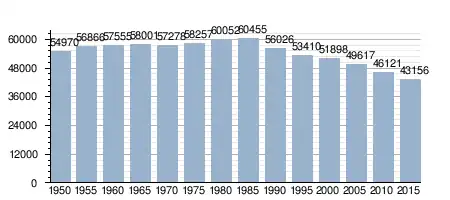 Zmiany w populacji Amami w latach 1950–2015: