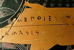 - ↑ Thomas Mannack: Griechische Vasenmalerei. Eine Einführung. Darmstadt: Philipp von Zabern, 2012, s. 120.