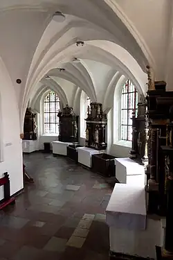 W kościołach pięcionawowych nawy czasem przechodziły wokół prezbiterium tworząc ambit dwunawowy. Przykładem może być pierwotny układ kościoła klasztornego w Henrykowie lub katedra Notre-Dame w Paryżu. Nawy ambitu mogły posiadać zróżnicowaną wysokość, czego przykładem jest katedra w Bourges[1].