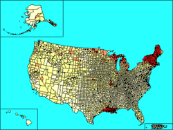Według spisu powszechnego z roku 2000 ludność pochodzenia francuskiego bądź francusko-kanadyjskiego przekraczała 10% ogółu populacji w 7 stanach USA: