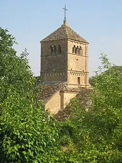 Wioska Ameugny położona jest na wysokim wzgórzu. W bliskim sąsiedztwie (0,5 km) znajduje się wioska Taizé. Najstarszym budynkiem w Ameugny jest romański kościół Notre Dame d'Ameugny. Kościół powstał pod koniec XI wieku. Inne zabytkowe budynki to: cmentarz parafialny, szkoła i budynek merostwa. We wiosce pracują siostry od Św. Andrzeja, które pomagają braciom ze Wspólnoty Taizé podejmować pielgrzymów.