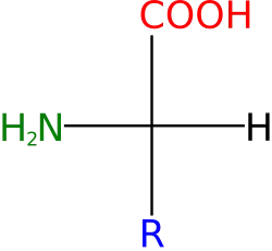 | Skrót 1-liter. | Skrót 3-liter. | Nazwa | Wzór strukturalny | Polarność łańcucha bocznego | Charakter chemiczny[2] | Możliwość biosyntezy[12] (u człowieka) |
