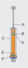 Ruch tłoka tłumiony jest przez olej, który musi być przetłoczony z przestrzeni pod tłokiem nad tłok, a w ruchu powrotnym odwrotnie. Odpowiednio dobrane zawory w tłoku zapewniają zróżnicowanie siły tłumienia podczas ściskania (tzw. dobicia) i rozciągania (odbicia) amoryzatora, przy czym siła odbicia jest większa od siły dobicia.