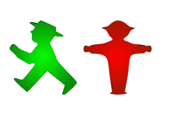 Peglau zdecydował się na użycie postaci antropomorficznej (potencjalnie zrozumiałej dla każdego): jako „czerwone światło” stworzył małego stojącego człowieczka, ze wzrokiem skierowanym do przodu i bardzo grubymi ramionami rozłożonymi szeroko, co miało symbolizować barykadę; dla „zielonego światła” stworzył małego człowieczka ustawionego bokiem, z jedną ręką skierowaną do przodu i nogami rozstawionymi w pozycji chodzenia. Zrezygnowano ze światła żółtego, uznając je za mało istotne[2].