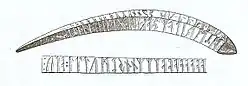 Artefakt ma 16 cm długości i ostre zakończenia, inskrypcja pokrywa dwie z trzech jego ścianek[1]. Napis, czytany od prawej do lewej, kończy się formułą magiczną[2]. Jego treść głosi: