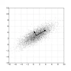 Wektory są tutaj oczywiście zapisywane w kolumnach. Wektor y to reprezentacja wektora x w przestrzeni głównych składowych.