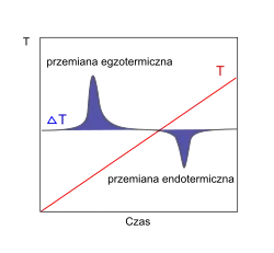 - bezpośrednie, polegające na rejestracji temperatury badanego materiału (metoda prosta) lub różnicy między temperaturą badanego materiału i materiału odniesienia (analiza termiczna różnicowa, DTA)