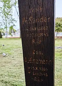 30 kwietnia 1945 został obok jego grobu przy kościele w Pogrodziu pochowany drugi zmarły kanonik warmińskiej kapituły katedralnej – ks. Franz Xaver Sander. Ich szczątki po wojnie usiłował odszukać ks. Leon Kaminski, ażeby przenieść je na cmentarz kapitulny we Fromborku, gdzie byli grzebani do tej pory kanonicy katedralni. Gdy jednak poszukiwania szczątków nie przyniosły rezultatów, w domniemanym miejscu pochówku postawiony został krzyż z Oberammergau, na którym wyryto dane obu kapłanów[7]. Krzyż ten został odnowiony w roku 2023 (na zdjęciu).