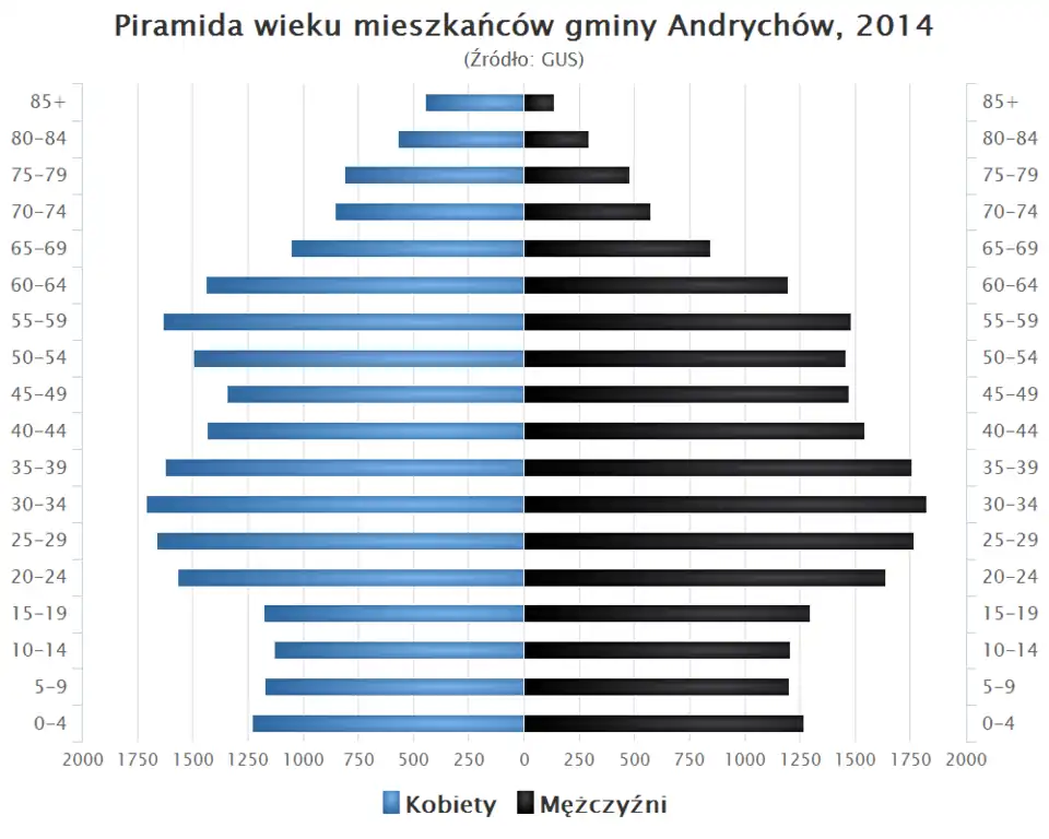 - Piramida wieku mieszkańców gminy Andrychów w 2014 roku[6].