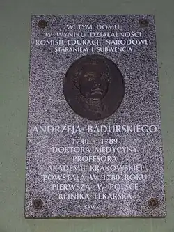 - W murze Kościoła św. Barbary w Krakowie od strony Małego Rynku jest wmurowana tablica pamiątkowa poświęcona Andrzejowi Badurskiemu, w miejscu pierwszej w Polsce kliniki uniwersyteckiej[5][6].