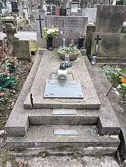 Spoczywa w rodzinnym grobowcu na Starych Powązkach (kw. 263, rząd V, miejsce 9)[1].