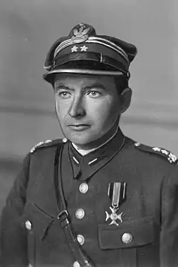 - ↑ Z tego okresu został uwieczniony przez innego uczestnika kursu, majora Albina Habinę, w książeczce Kurs bohaterów w karykaturze (1932)[10][12].
