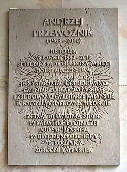 - ↑ Kraków: odsłonięto tablicę upamiętniającą Andrzeja Przewoźnika. 11 kwietnia 2012. [dostęp 2012-04-13].