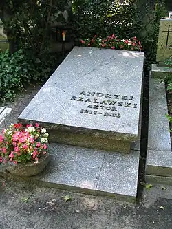 - ↑ Cmentarz Stare Powązki: ANDRZEJ SZALAWSKI, [w:] Warszawskie Zabytkowe Pomniki Nagrobne [dostęp 2019-12-19].