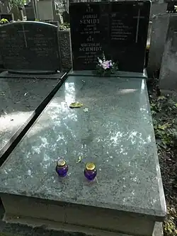 - ↑ Cmentarz Stare Powązki: Mieczysław Schmidt, [w:] Warszawskie Zabytkowe Pomniki Nagrobne [dostęp 2020-05-15].