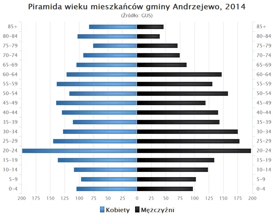 - Piramida wieku mieszkańców gminy Andrzejewo w 2014 roku[6].
