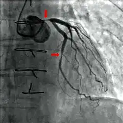 - Przezskórna koronarografia – w badaniu tym, środek kontrastowy dostarczany był do badanego miejsca z wykorzystaniem dostępu poprzez tętnicę udową. Obecnie jednak stosuje się dostęp poprzez tętnicę promieniową ze względu na spadek powikłań miejscowych czy skrócony czas hospitalizacji. Metoda ta ma jednak swoje wady – jest ona trudniejsza do opanowania oraz wymaga więcej cierpliwości, jednakże w ostatecznym rozrachunku korzyści ekonomiczne jak i również poprawienie samopoczucia pacjentów którzy mogą wcześniej opuścić szpital powoduje, iż jest to obecnie najczęściej stosowana metoda w badaniach koronarografii[6].